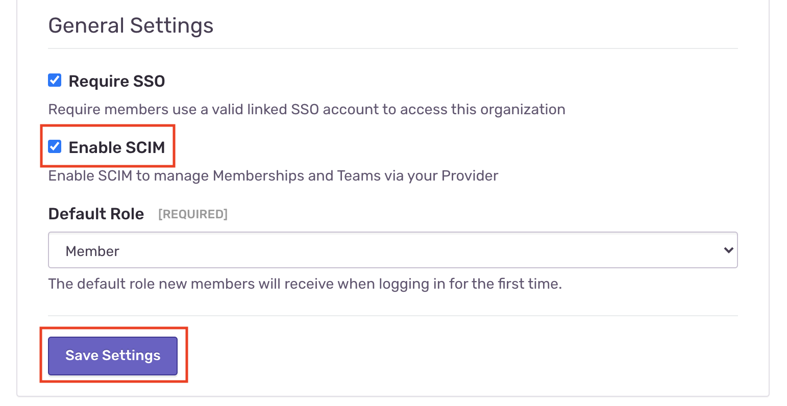 - Under General Settings select "Enable SCIM", then "Save Settings"